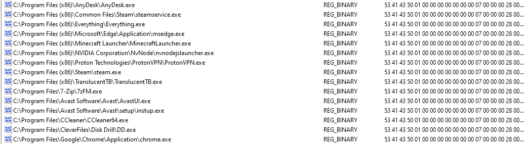 This Registry Contains all the EXE’s on this users PC (Can show deleted files too sometimes, however, it is all relevant)