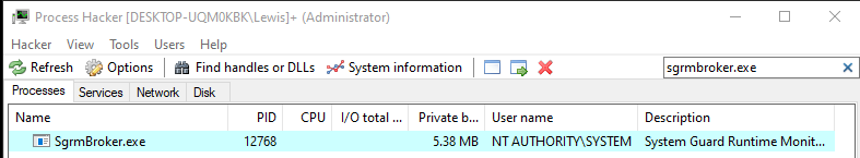 Be aware that some computers have sgrmbroker.exe disabled or this tool may not work entirely - We do not recommend you ban for this tool not working.